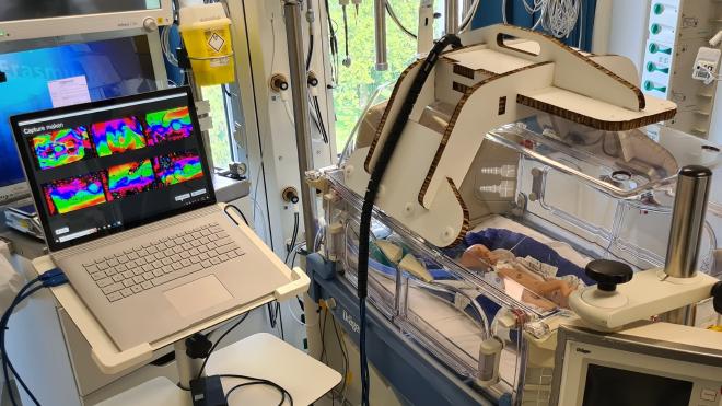 In the Netherlands, around 12,000 babies are born premature each year. These premature babies are nursed in a Neonatal Intensive Care Unit (NICU) in an incubator, which provides a controlled environment. A premature baby needs optimal growth to promote neurological development in both the short and long term and is therefore measured weekly. To measure height, a fold-out ruler is used, which requires the premature infant to be stretched. To measure the head circumference, a tape measure is used, which is brought around the head. The current measuring instruments cause stress because the premature is touched. Stress, caused by discomfort or pain, can cause negative health effects, such as growth deficiency or impaired cognitive ability. In addition to the negative health effects, current instruments are unhygienic, inaccurate, and inconvenient to use.